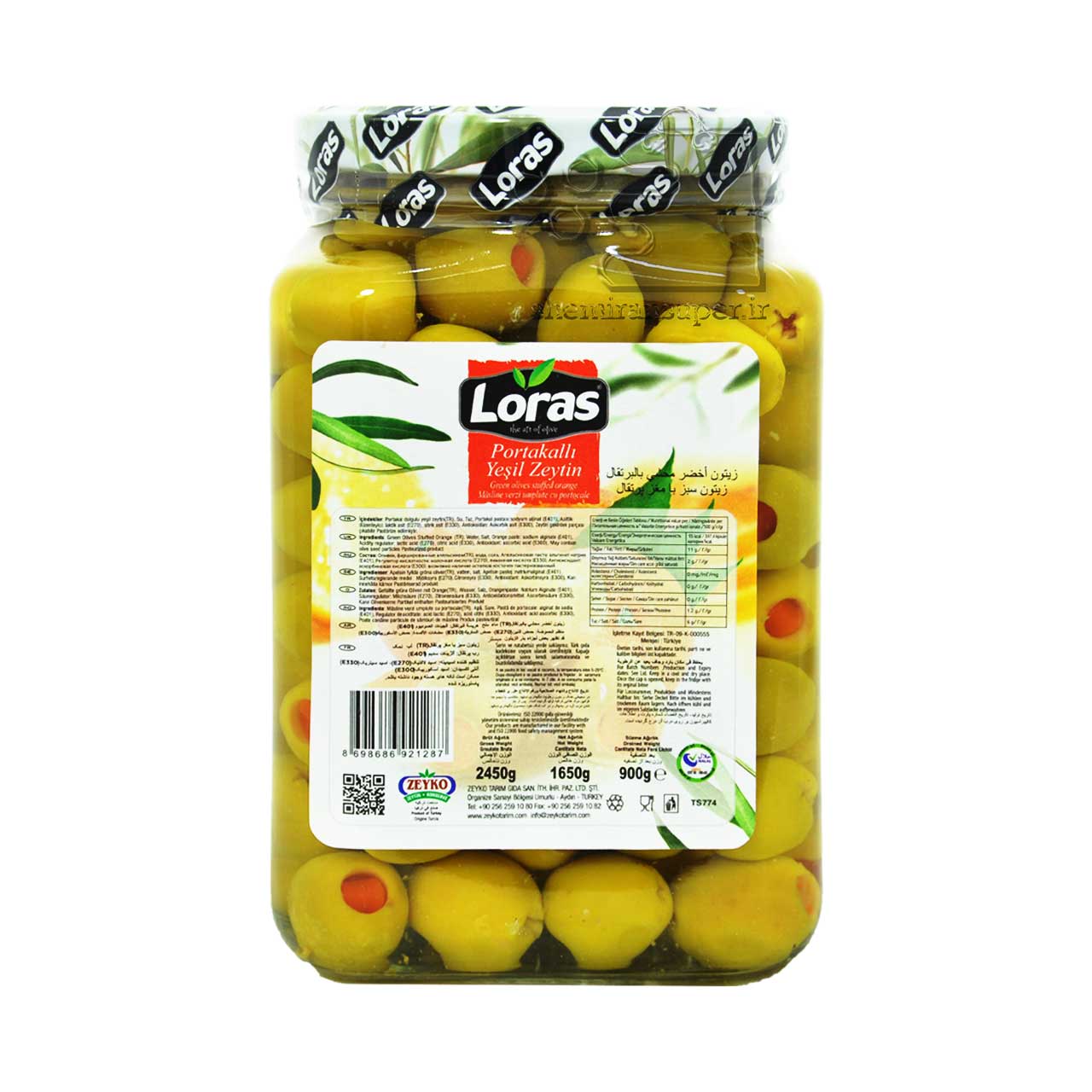 زیتون سبز مغزدار لوراس 4257 Loras Dolgulu Yeşil Zeytin 4257 کاراکتر زیتون : زیتون سبز بدون هسته کبابی بسته بندی : شیشه وزن خالص 850 گرم وزن ناخالص : 2450 گرم